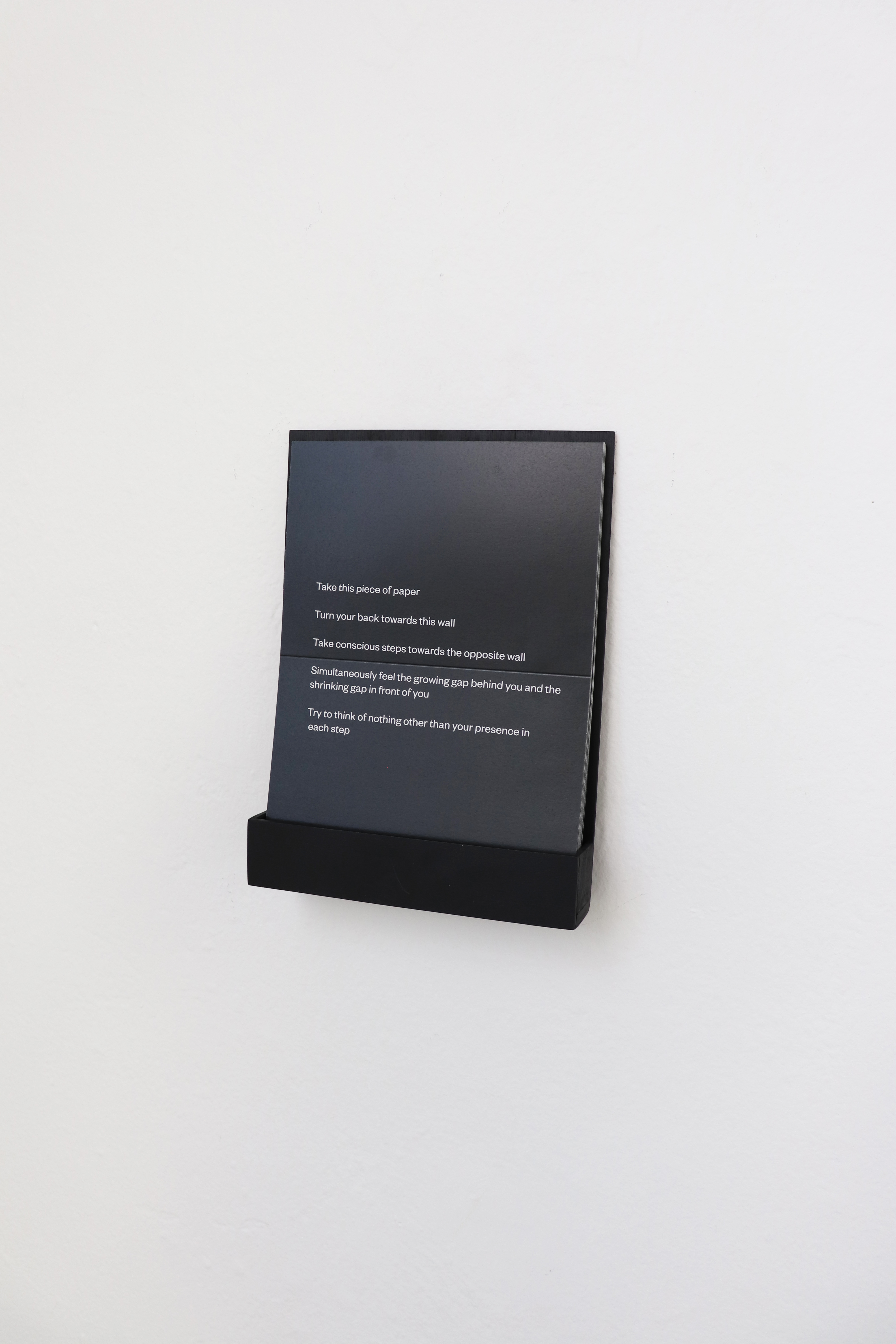 In the exhibition, space is examined from its limiting and objective qualities which form a framework for physical and subjective experience. Viewers activate certain works with their bodies and limits in space may induce ideas of other limits.