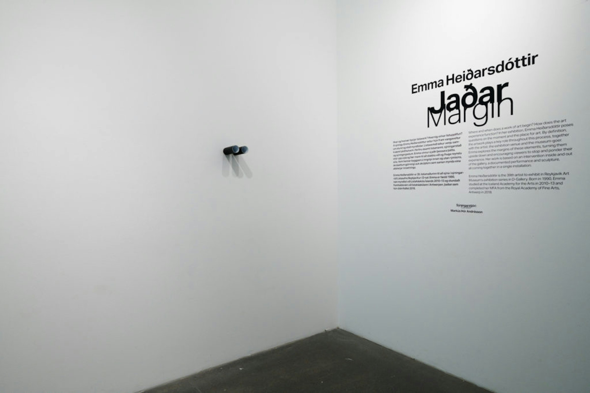 "In her exhibition, Emma Heiðarsdóttir poses questions on the moment and the place for art. Where and when does the art experience begin, how long does it last and where does it travel with the audience? The artwork usually plays a key role throughout this process as well as the exhibition site – the art museum. Emma turns these elements upside down and encourages the viewers to stop and ponder their experience." - Markús Þór Andrésson, curator.