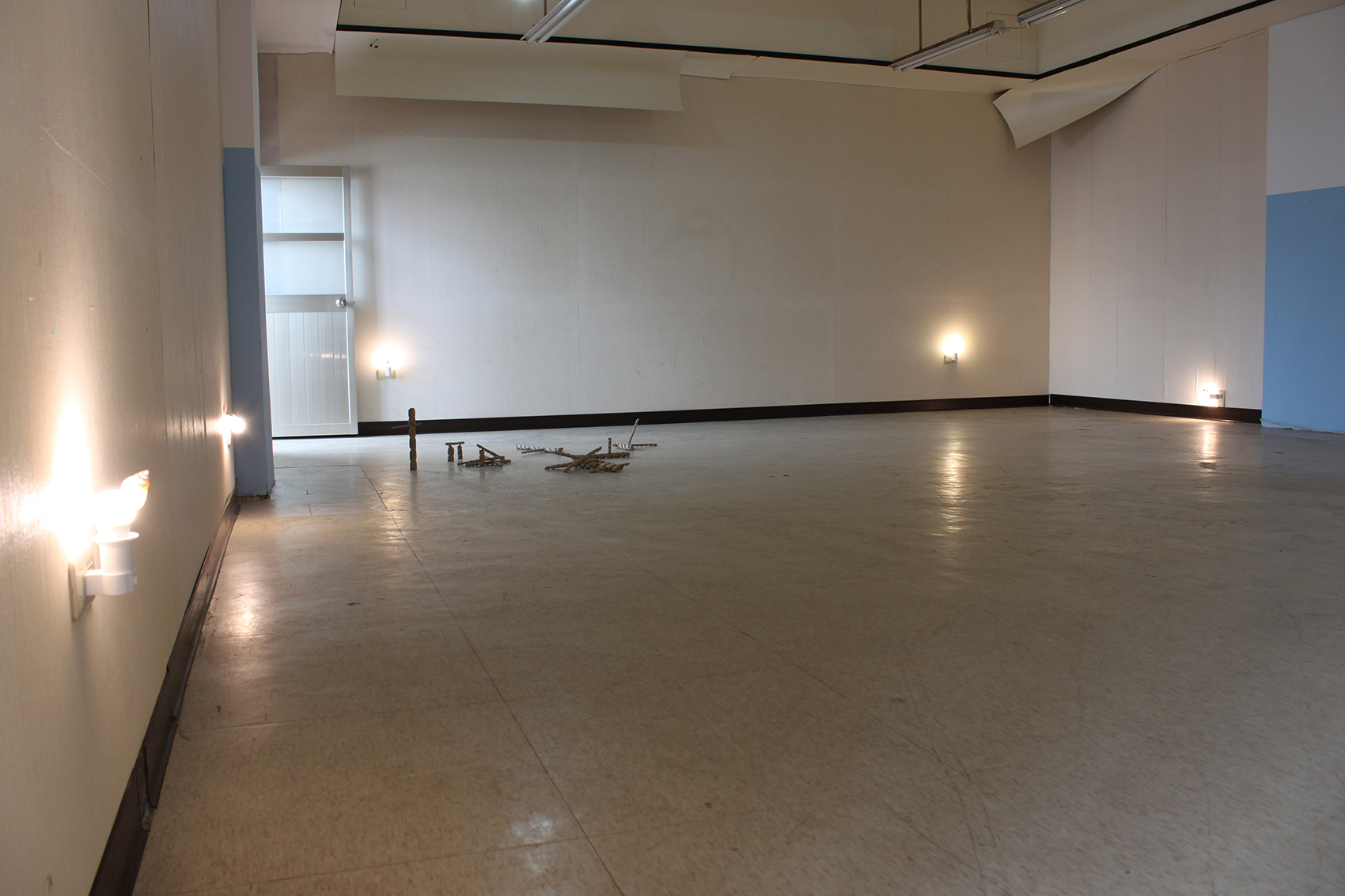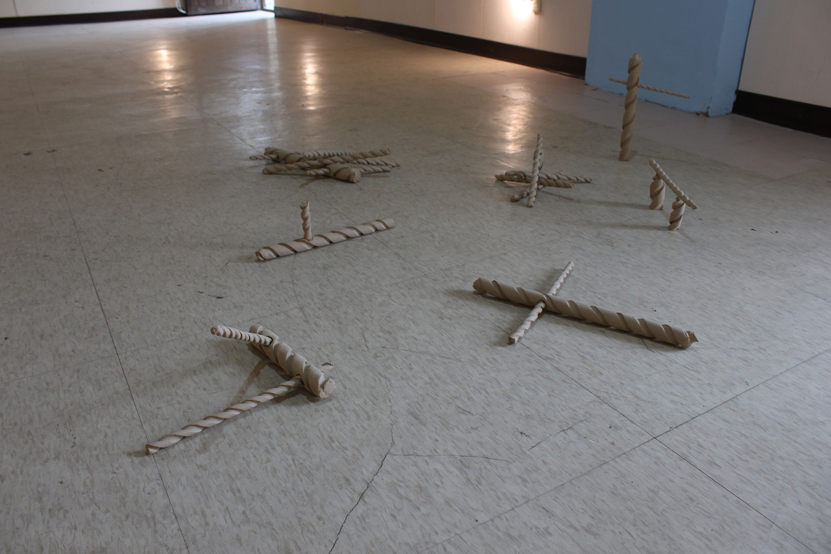 The neighbourhood of Tai Pin Elementary School is a tranquil place overlooking the city of Keelung. Here and around Keelung new inspiring images have influenced my continuous process. The spiral is a symbol that has been reoccurring in my ideas here in Taiwan. I find it everywhere; from the nature, the temple or the supermarket. The spiral's many possible meanings have to do with continuity and movement of some kind. In this exhibition the spiral shape in its natural form will interact with a room in Tai Pin Elementary school, using material found nearby.